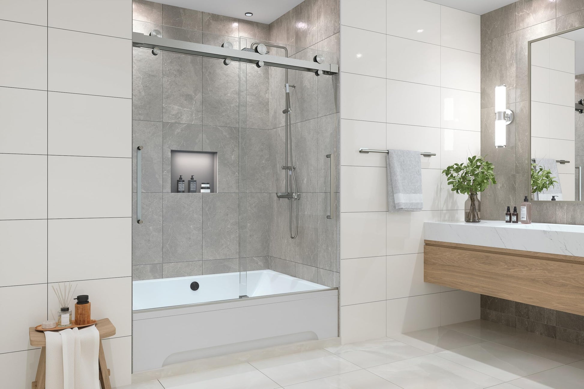 EUROTECH SHOWERS Windsor 56.5-60" W x 66" High 3/8" Twinglide Frameless Bathtub Shower Door with 10mm Clear Tempered Glass